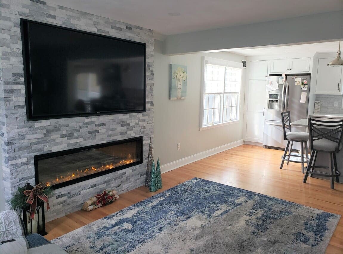This kitchen remodel in Wilmington, MA transformed two separate rooms into one open, full‑length kitchen that now spans the entire back wall of the home. The project features all‑new cabinets, updated lighting, new flooring, upgraded windows, and a slider that opens directly onto the backyard deck. The result is a bright, modern, highly functional kitchen with improved flow, expanded workspace, and natural light throughout.